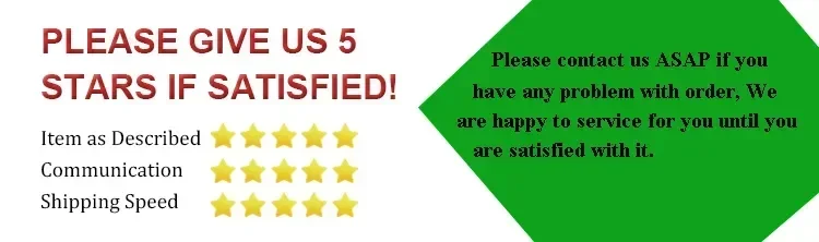 1. Please leave 5 star feedback if you're satisfied with our products and service, we will appreciate it (Item as Described 5 Stars, Communication 5 stars, Shipping time 5-stars).