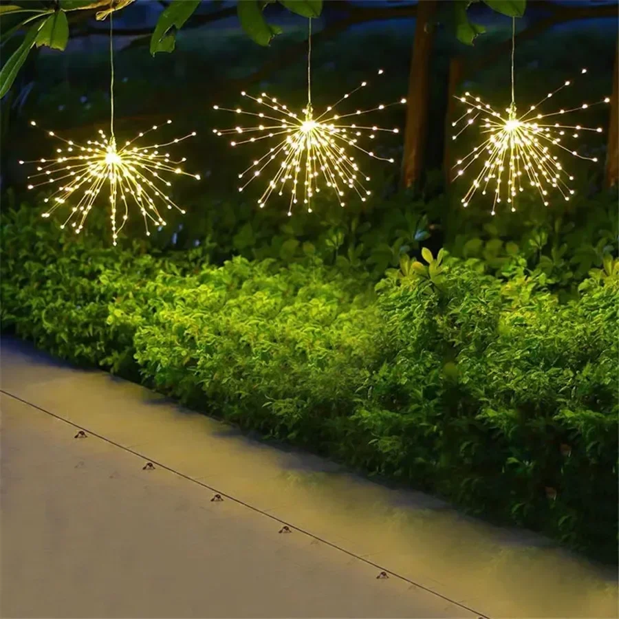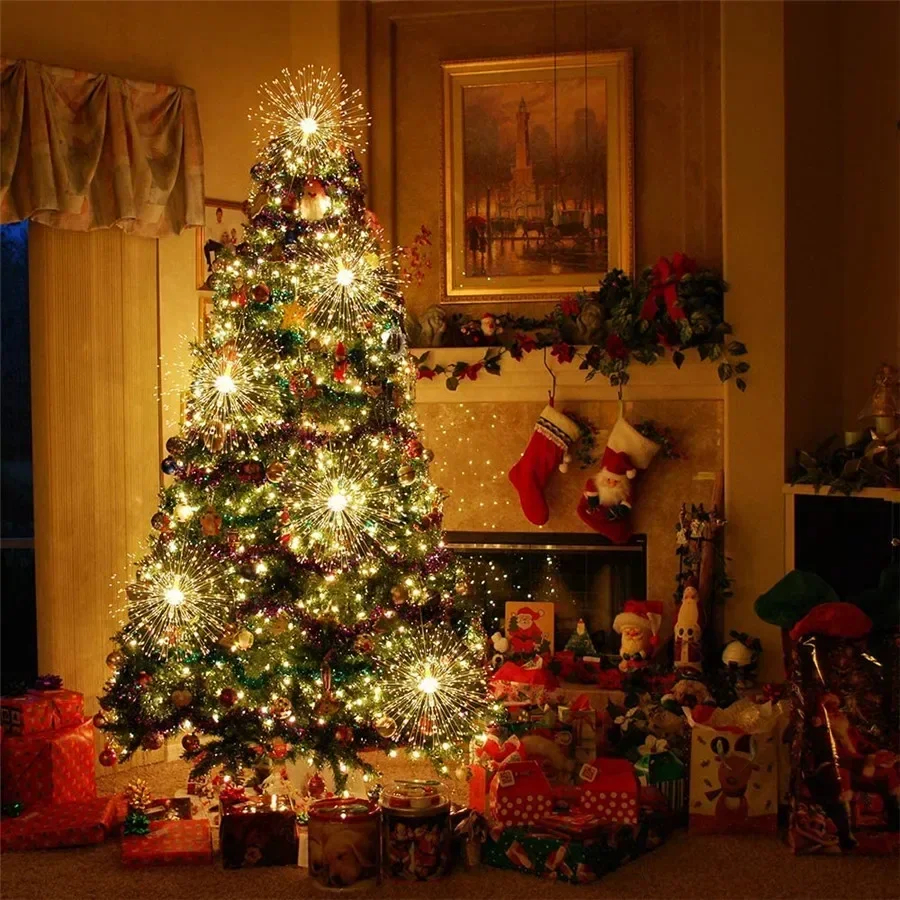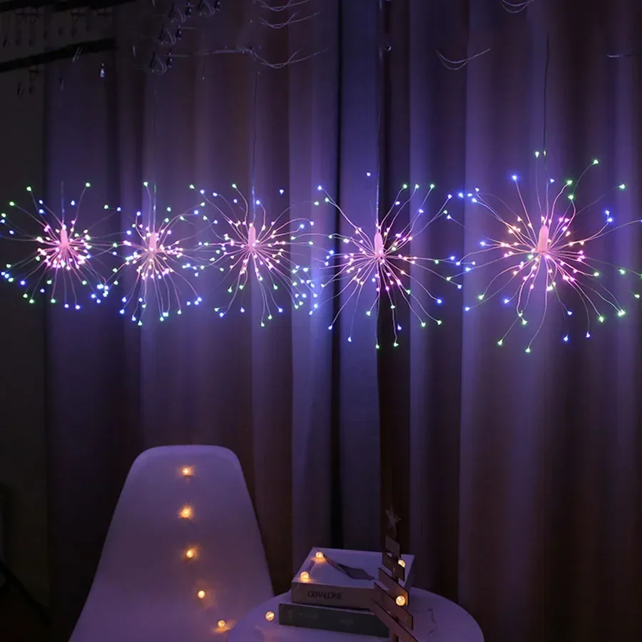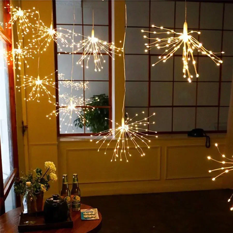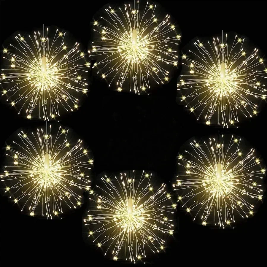 Firework Light 120/180/ 200 LED Starburst Light Battery Operated Christmas Party Globe Ball Copper Wire Hanging Fairy Light