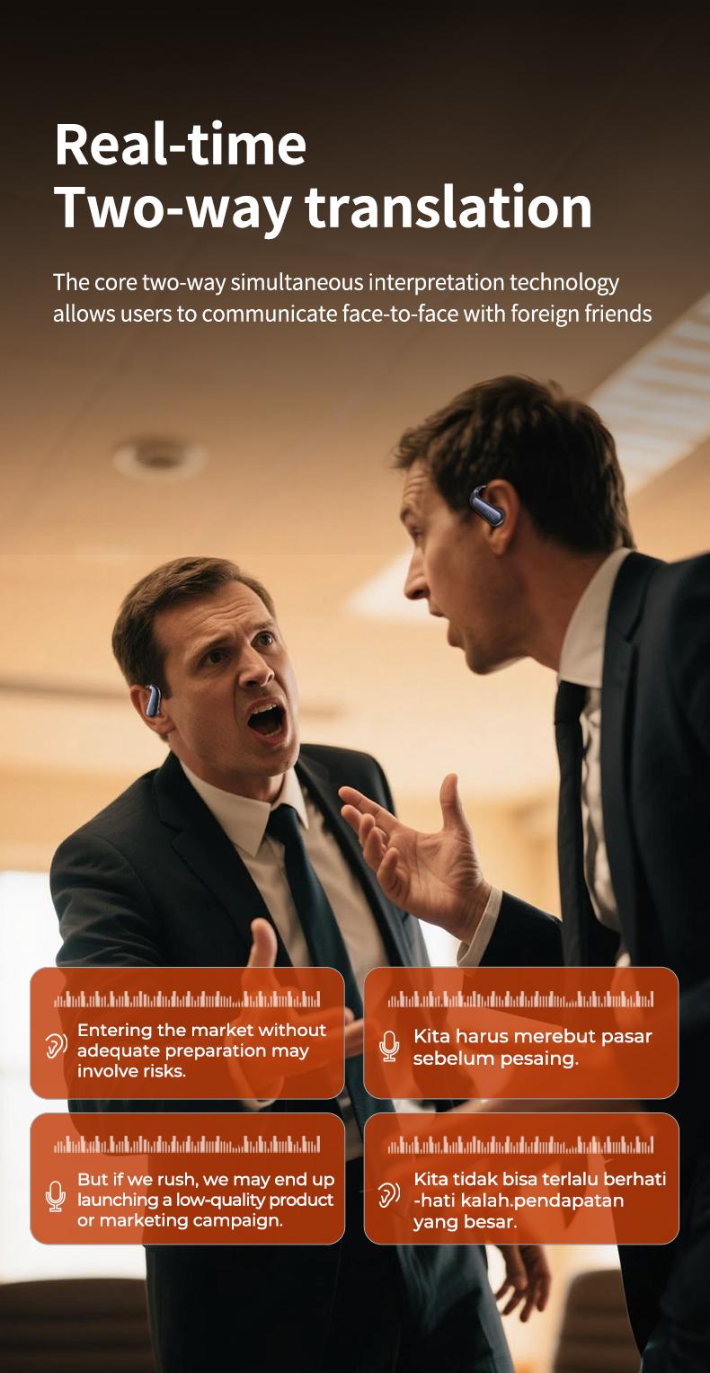 HTC NE38 OWS Wireless Translation Earbuds, Supports Real-Time Translation in 134 Languages with APP, Bluetooth 6.0 Earphones, IPX5 Waterproof, HIFI Sound Quality, Suitable for Office, Sports, Study and Audio Calls | Built-In Microphone | AI Headphones