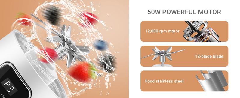 Fuel your day in just 30 seconds with this powerful 12-blade turbo portable blender. Perfect for smoothies, protein shakes, fresh juices, baby food, or even DIY skincare — all in one compact, travel-ready design.